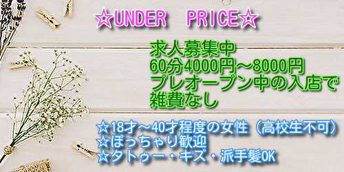 | 店名 | アンダープライス | 資格 | 18以上(高校生不可) |